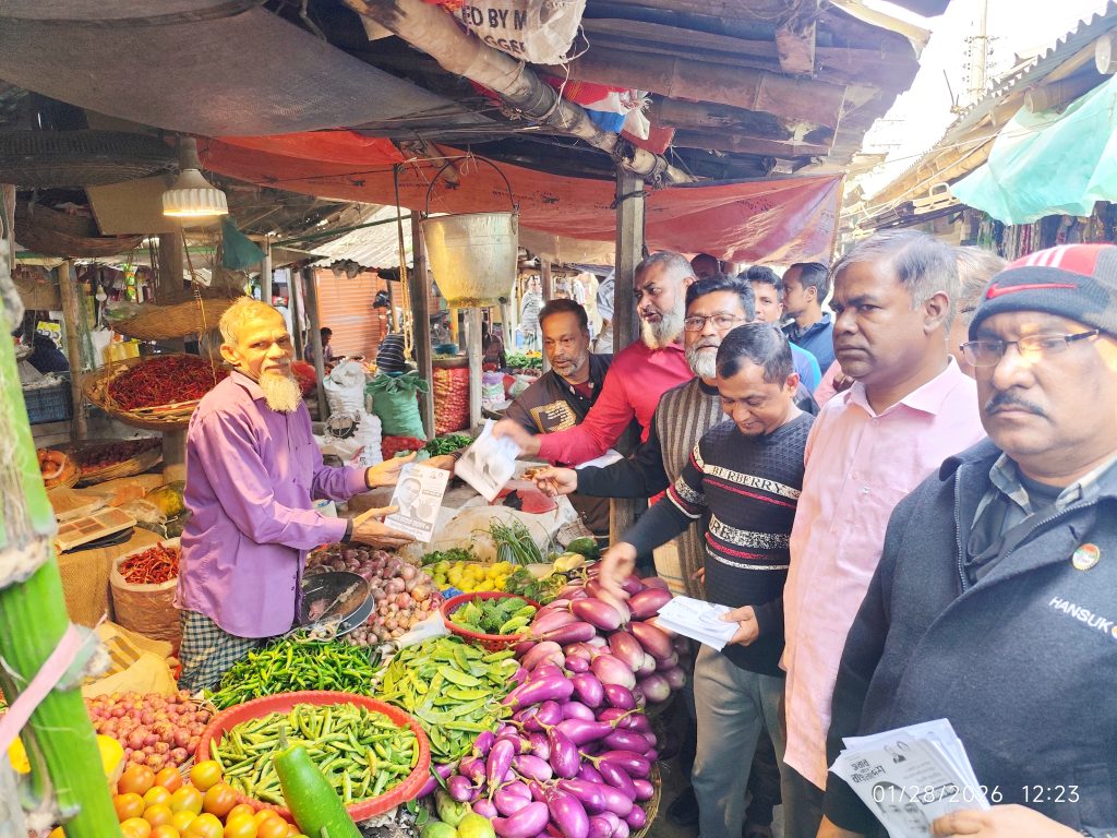 আসন্ন জাতীয় সংসদ নির্বাচনকে সামনে রেখে বগুড়া-৬ সদর আসনে বিএনপির মনোনীত প্রার্থী তারেক রহমানের পক্ষে সমর্থন জানিয়ে বুধবার (২৮ জানুয়ারি) সকালে এ প্রচারণা কার্যক্রম পরিচালিত হয়। এ সময় ব্যবসায়ী নেতৃবৃন্দ ও স্থানীয় নেতাকর্মীরা দোকানিদের সঙ্গে মতবিনিময় করেন এবং ধানের শীষ প্রতীকে ভোট দেওয়ার আহ্বান জানান। প্রচারণাকালে ব্যবসায়ীরা তাঁদের বিভিন্ন সমস্যা, প্রত্যাশা ও উন্নয়ন ভাবনার কথা তুলে ধরেন। নেতৃবৃন্দ সেগুলো গুরুত্বের সঙ্গে শোনেন এবং ধানের শীষ নির্বাচিত হলে তা বাস্তবায়নের আশ্বাস দেন।