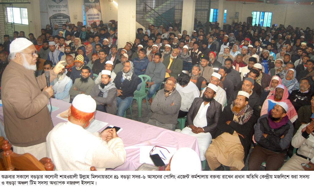 বগুড়া সংবাদ:শুক্রবার সকালে বগুড়ার কলোনীস্থ শাহওয়ালী উল্লাহ মিলনায়তনে বগুড়া-৬ সদর আসনে বাংলাদেশ জামায়াতে ইসলামী মনোনীত ১১ দলীয় জোট প্রার্থী অধ্যক্ষ মাওলানা আবিদুর রহমান সোহেলের দাঁড়িপাল্লা প্রতীকের পোলিং এজেন্ট কর্মশালা অনুষ্ঠিত হয়। নির্বাচন পরিচালক ও শহর জামায়াতের সেক্রেটারী অধ্যাপক আ স ম আব্দুল মালেকের পরিচালনায় অনুষ্ঠানে প্রধান অতিথি হিসেবে বক্তব্য রাখেন কেন্দ্রীয় মজলিশে শুরা সদস্য ও বগুড়া অঞ্চল টিম সদস্য অধ্যাপক নজরুল ইসলাম। আরো বক্তব্য রাখেন বগুড়া-৬ সদর আসনের সংসদ সদস্য প্রার্থী অধ্যক্ষ মাওলানা আবিদুর রহমান সোহেল, নায়েবে আমীর মাওলানা আব্দুল হালিম বেগ, সহকারী সেক্রেটারী রফিকুল আলম, এ্যাডভোকেট আল আমিন, সেলিম রেজা, শহর শ্রমিক কল্যাণ ফেডারেশনের সভাপতি আজগর আলী, যুব ও ক্রীড়া সম্পাদক অধ্যাপক আব্দুস সালাম তুহিন, এ্যাডভোকেট শাহীন মিয়া, অধ্যক্ষ ইকবাল হোসেন, মাওলানা হেদায়েতুল ইসলাম, ইঞ্জিনিয়ার বজলুর রহমান প্রমুখ।