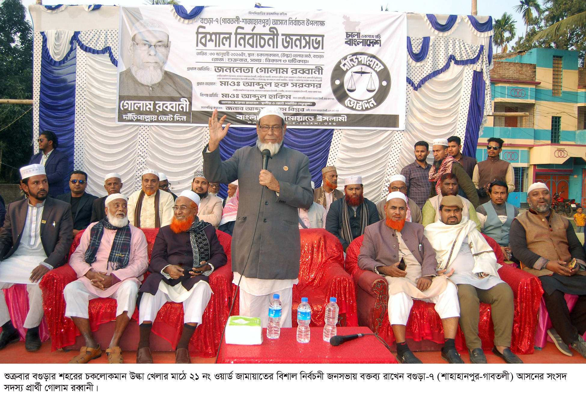 বগুড়া সংবাদ: আগামী জাতীয় সংসদ নির্বাচনের উপলক্ষে বাংলাদেশ জামায়াতে ইসলামী বগুড়া পৌরসভার ২১নং ওয়ার্ড শাখার উদ্যোগে বিশাল নির্বাচনী জনসভা অনুষ্ঠিত হয়েছে।