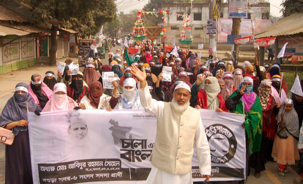 বগুড়া সংবাদ : বগুড়া-৬ সদর আসনে জামায়াত মনোনীত প্রার্থী অধ্যক্ষ আবিদুর রহমান সোহেলের দাঁড়িপাল্লা প্রতিকের পক্ষে বিশাল মিছিল করেছে জামায়াতে ইসলামীর মহিলা শাখা। বগুড়া শহর মহিলা জামায়াতের ১৯, ২০ ও ২১ নম্বর ওয়ার্ড আয়োজিত নির্বাচনী মিছিলটি শুরু হয় রোববার সকাল ১১টায়। বগুড়া-৬ সদর আসনে জামায়াত মনোনীত সংসদ সদস্য পদপ্রার্থী অধ্যক্ষ আবিদুর রহমান সোহেল মিছিলে নেতৃত্ব দেন। সাবগ্রাম দ্বিতীয় বাইপাস সড়কে শুরু হয়ে মিছিলটি আকতারা, নারুলী, বউবাজার, কইপাড়া, বরিয়া হয়ে আবারও দ্বিতীয় বাইপাসে গিয়ে শেষ হয়। মিছিল শেষে সংক্ষিপ্ত সমাবেশে বক্তব্য রাখেন সংসদ সদস্য পদপ্রার্থী অধ্যক্ষ আবিদুর রহমান সোহেল, শহর জামায়াতের সেক্রেটারি অধ্যাপক আ.স.ম আব্দুল মালেক, সহকারি সেক্রেটারি অধ্যাপক রফিকুল আলম, এ্যাড. আল-আমিন, শহর মহিলা জামায়াতের সেক্রেটারি ফজিলাতুন্নেছা হাসি, সহকারি সেক্রেটারি মরিয়ম বেগম মুন্নি, ৫নং জোন সেক্রেটারি দিলরুবা খানম ইতি, সহকারি সেক্রেটারি নার্গিস আকতার, ১৯নং ওয়ার্ড সেক্রেটারি সুরাইয়া পারভীন, ২০নং ওয়ার্ড সেক্রেটারি ও সাবেক কাউন্সিলর মঞ্জুয়ারা মুন্নী, ২১নং ওয়ার্ড সেক্রেটারি মনিরা বেগম।