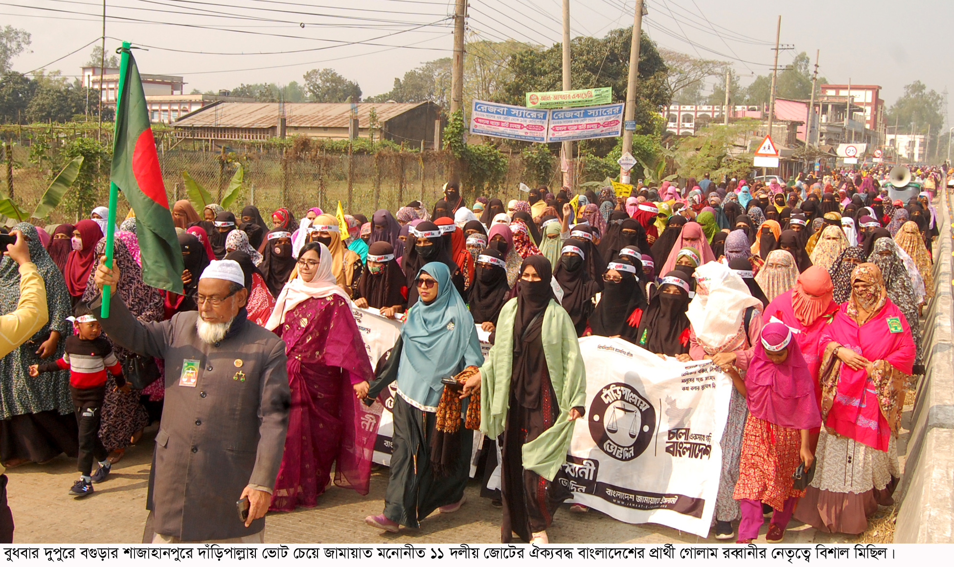 বগুড়া-৭ আসনে জামায়াত প্রার্থীর দাঁড়িপাল্লা নিয়ে হাজারো নারীর রাজপথে মিছিল