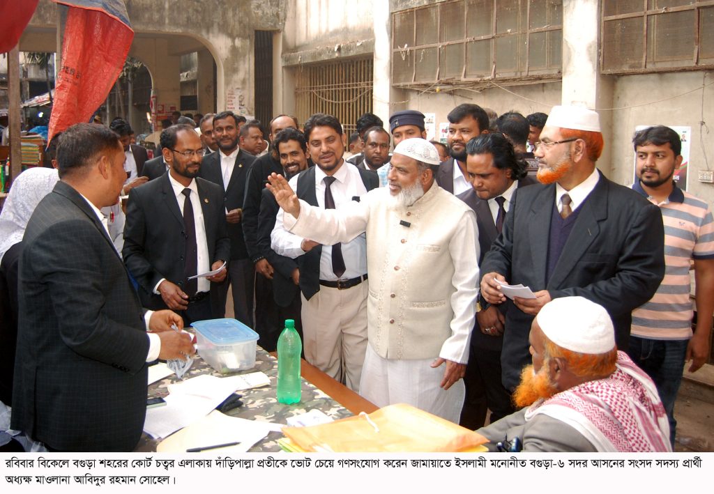 বগুড়া কোর্ট চত্বরে দাড়িপাল্লায় ভোট চাইলেন প্রার্থী সোহেল