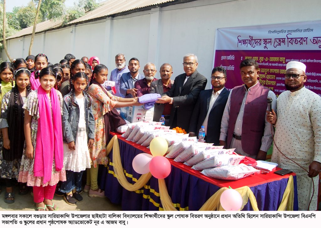 বগুড়ার ছাইহাটা বালিকা বিদ্যালয়ে স্কুল পোষাক প্রদান অনুষ্ঠিত