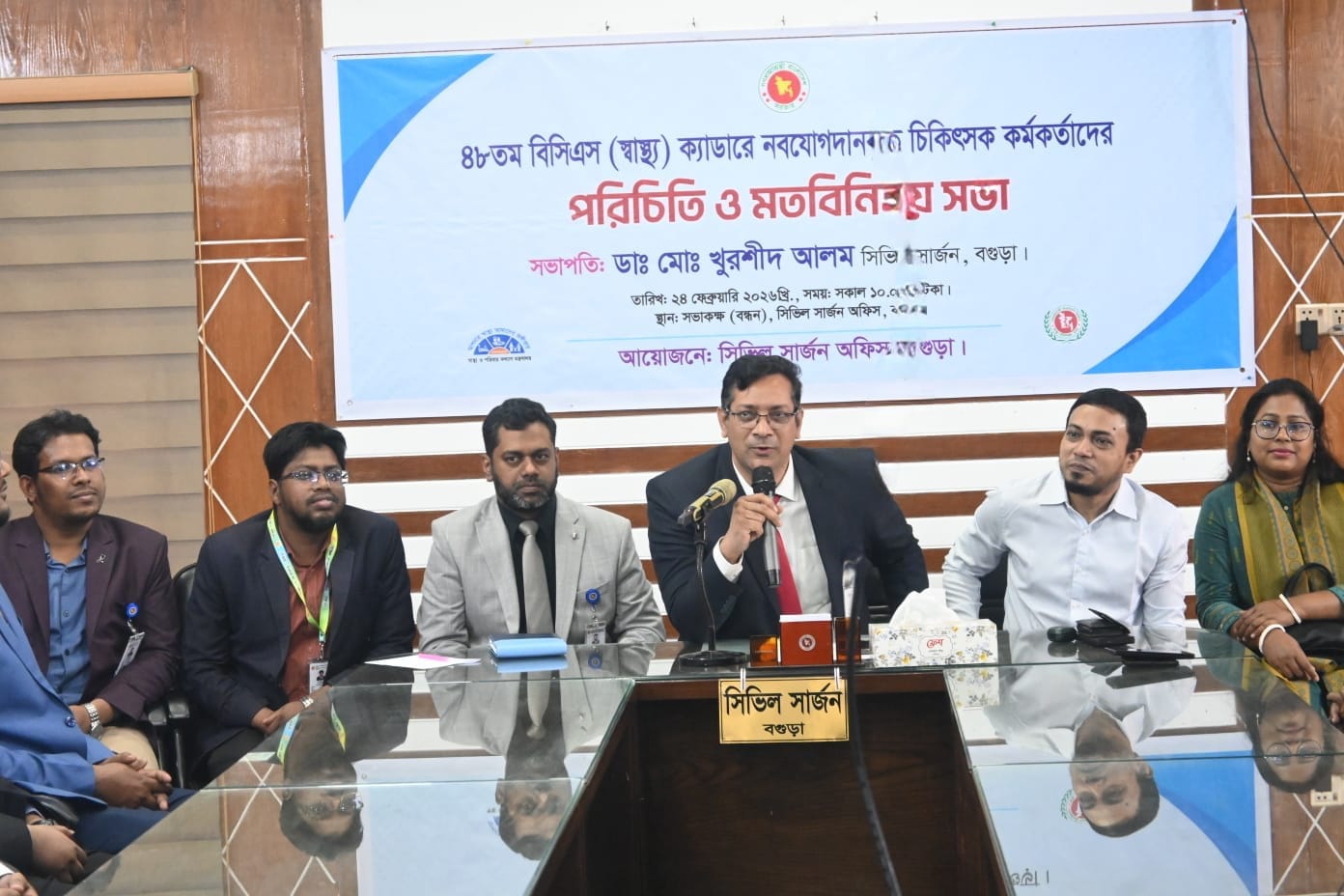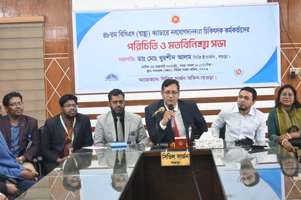 বগুড়া সংবাদ : ৪৮তম বিসিএস এর নবযোগদানকৃত চিকিৎসকদের নিয়ে পরিচিতি ও মতবিনিময় সভা আয়োজন করেছে বগুড়া সিভিল সার্জনের কার্যালয়। মঙ্গলবার, সকাল দশটায়, কার্যালয়ের বন্ধন সম্মেলন কক্ষে এই কর্মশালাটি অনুষ্ঠিত হয়। এতে সভাপতিত্ব করেন জেলার সিভিল সার্জন ডা. মোঃ খুরশীদ আলম। প্রায় শতাধিক নবযোগদানকৃত চিকিৎসক বিভিন্ন উপজেলা থেকে অংশগ্রহণ করেন। মত বিনিময়ের পাশাপাশি সভায় তাদের সামনে দুটি বৈজ্ঞানিক উপস্থাপনা তুলে ধরা হয়। ‘Physician’s Etiquettes as Government Officer’ বিষয়ক পাওয়ার পয়েন্ট উপস্থাপনা তুলে ধরেন বগুড়া সদর উপজেলার স্বাস্থ্য ও পরিবার পরিকল্পনা কর্মকর্তা ডা. ফারজানুল ইসলাম নির্ঝর এবং ‘Medico-legal Cases in Hospital’ বিষয়ক উপস্থাপনা করেন সিভিল সার্জন কার্যালয়ের মেডিকেল অফিসার ডা. মো: নাফিউর রহমান। স্বাগত বক্তব্য প্রদান করেন ডেপুটি সিভিল সার্জন ডা. এসএম নূর-ই-শাদীদ। উপস্থাপনা করেন মেডিকেল অফিসার ডা. সাজ্জাদ-উল-হক। এছাড়া উন্মুক্ত আলোচনায় অংশ নেন ডা. পূণম সরকার, মনোরোগ বিশেষজ্ঞ ডা. মো: আজিজুল হাকিম বাপ্পা প্রমুখ। নবযোগদানকৃতদের উদ্দেশ্যে সিভিল সার্জন ডা. খুরশীদ আলম বলেন, একজন লোকসেবী চিকিৎসক হিসেবে নিজেদের গড়ে তুলতে হবে। জ্ঞান ও দক্ষতার উন্নয়ন ঘটাতে হবে। প্রজাতন্ত্রের কর্মচারী হিসেবে নিজেদের দায়িত্ব ও কর্তব্য নিষ্ঠার সাথে পালন করতে হবে। কর্মস্থলে থাকতে হবে। অধিকার সম্পর্কে সচেতন থাকতে হবে।