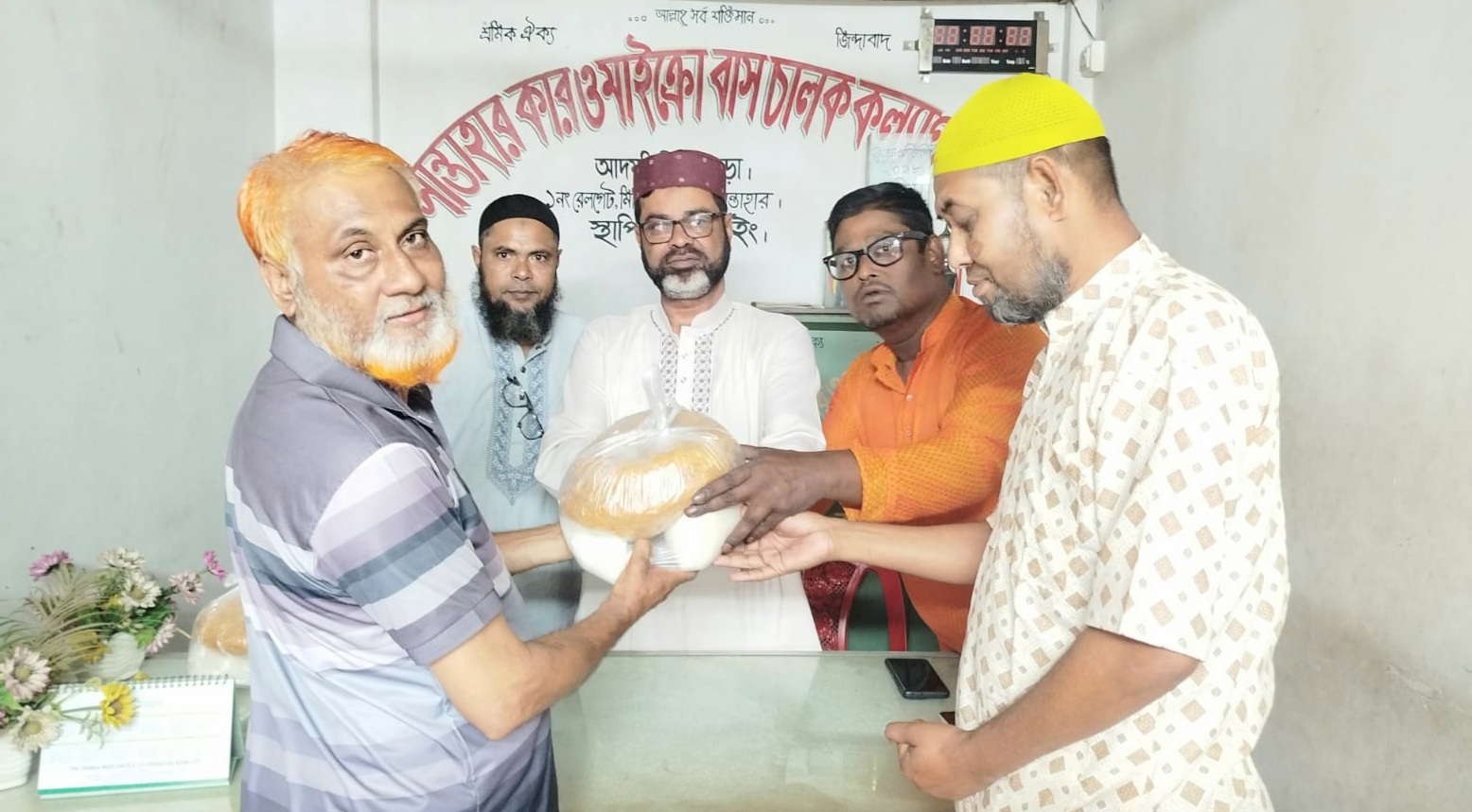 সান্তাহারে কার ও মাইক্রো বাস চালক কল্যাণ সমিতির উদ্যোগে ঈদ সামগ্রী বিতরণ