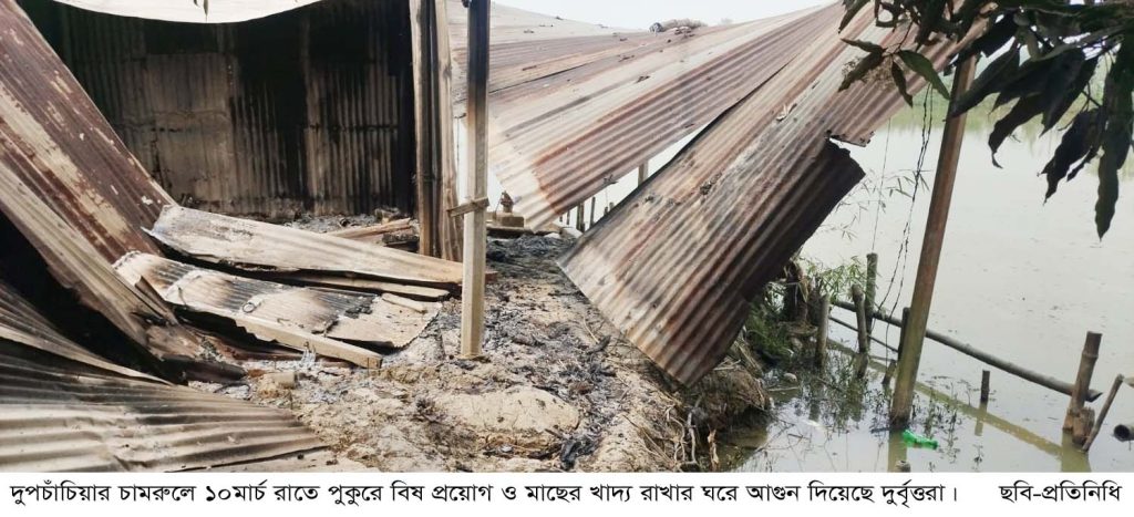 দুপচাঁচিয়ায় পুকুরে বিষ প্রয়োগ ও আগুন