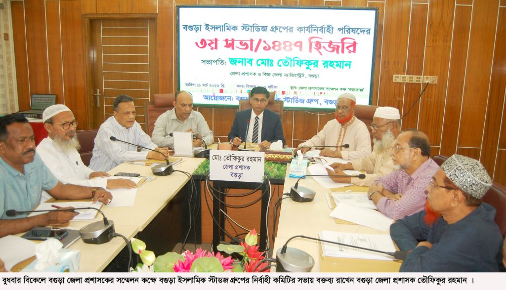 বগুড়া সংবাদ : বুধবার বিকেলে বগুড়া জেলা প্রশাসকের সম্মেলন কক্ষে বগুড়া ইসলামিক স্টাডজ গ্রুপের