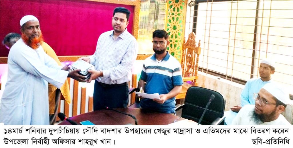 দুপচাঁচিয়ায় সৌদি বাদশার উপহারের খেজুর মাদ্রাসা ও এতিমখানায় বিতরণ