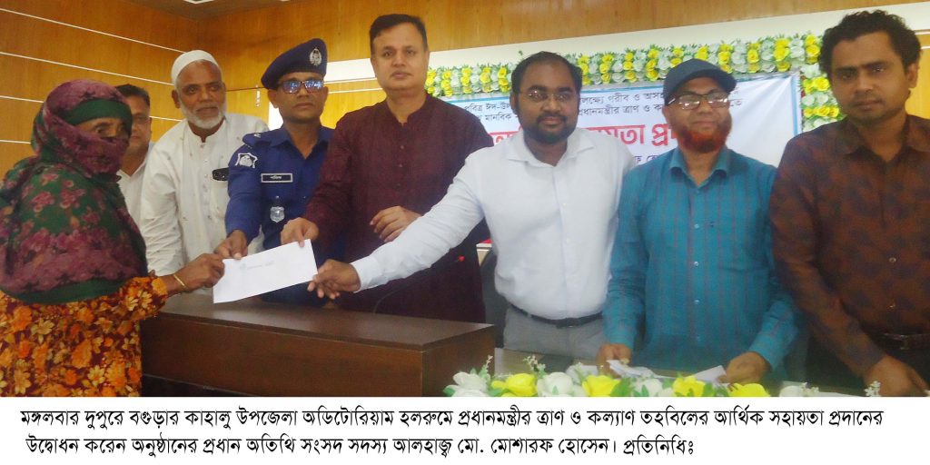কাহালুতে প্রধানমন্ত্রীর ত্রাণ ও কল্যাণ তহবিলের আর্থিক সহায়তা প্রদান করলেন এম পি মোশারফ হোসেন