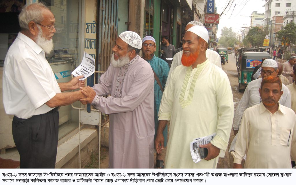 বগুড়া সংবাদ : বগুড়া-৬ সদস আসনের উপনির্বাচনে শহর জামায়াতের আমীর ও বগুড়া-৬ সদর আসনের উপনির্বাচনে সংসদ সদস্য পদপ্রার্থী অধ্যক্ষ মাওলানা আবিদুর রহমান সোহেল বুধবার সকাল সাড়ে ৯ টা হতে বগুড়া শহরের দত্তবাড়ী, কালিতলা, কলেজ বাজার ও মাটিডালী বিমান মোড় এলাকায় দাঁড়িপাল্লাায় ভোট চেয়ে গণসংযোগ করেন। এ সময় জেলা জামায়াতের নায়েবে আমীর অধ্যাপক আব্দুল হাকিম, শহর জামায়াতের সহকারী সেক্রেটারী অধ্যাপক আব্দুর রাজ্জাক, অফিস সম্পাদক মাওলানা আব্দুল হামিদ বেগ, যুব ও ক্রীড়া সম্পাদক অধ্যাপক আব্দুস সালাম তুহিন, প্রচার সেক্রেটারী অধ্যক্ষ ইকবাল হোসেন, ২ নং ওয়ার্ড আমীর ডা. আবু বক্কর সিদ্দিক, ৩ নং ওয়ার্ড আমীর জাকিরুল ইসলাম, ১৭ নং ওয়ার্ড আমীর আব্দুর রউফ পারভেজ, ১৮ আমীর ইব্রাহিম হোসেন প্রমুখ। গণ সংযোগে কলেজ বাজারে পথ সভায় অধ্যক্ষ আবিদুর রহমান সোহেল বলেন, ন্যায় ও ইনসাফ প্রতিষ্ঠায় দাঁড়িপাল্লায় ভোট দিতে সবাই ৯ এপ্রিল ঝাঁপিয়ে পড়ুন। জামায়াতের নেতাকর্মী দখল চাঁদাবাজী টেন্ডার বাজির সাথে জড়িত নয়। ইনশাআল্লাহ বিজয়ী হলে বগুড়া কে যানজট, সন্ত্রাস, চাঁদাবাজ মুক্ত করে গড়ে তুলবো।