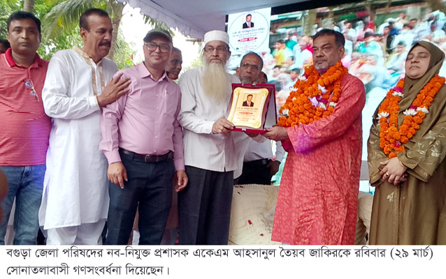 সোনাতলায় জেলা পরিষদের নব-নিযুক্ত প্রশাসক জাকিরকে গণসংবর্ধনা