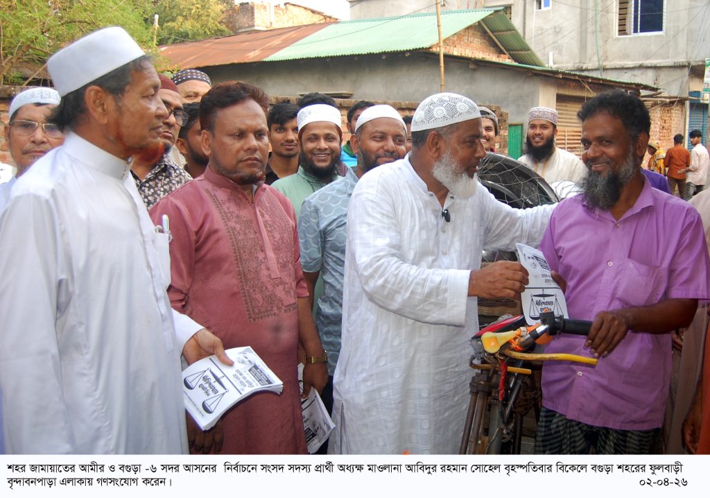 বগুড়ার ফুলবাড়ী ও বৃন্দাবনপাড়ায় সোহেলের দাঁড়িপাল্লায় ভোট চেয়ে গণসংযোগ