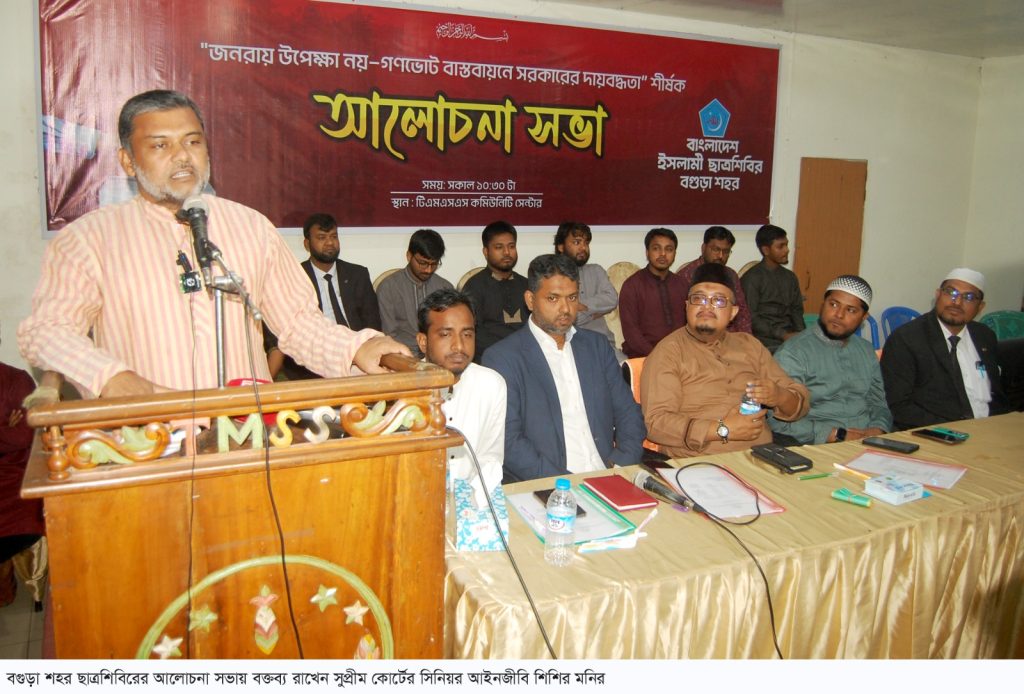 তিনি রোববার দুপুরে বগুড়ায় ইসলামী ছাত্রশিবির আয়োজিত “জনরায় উপেক্ষা নয়-গণভোট বাস্তবায়নে সরকারের দায়বদ্ধতা” শীর্ষক আলোচনা সভায় প্রধান অতিথির বক্তব্যে এসব কথা বলেন।
