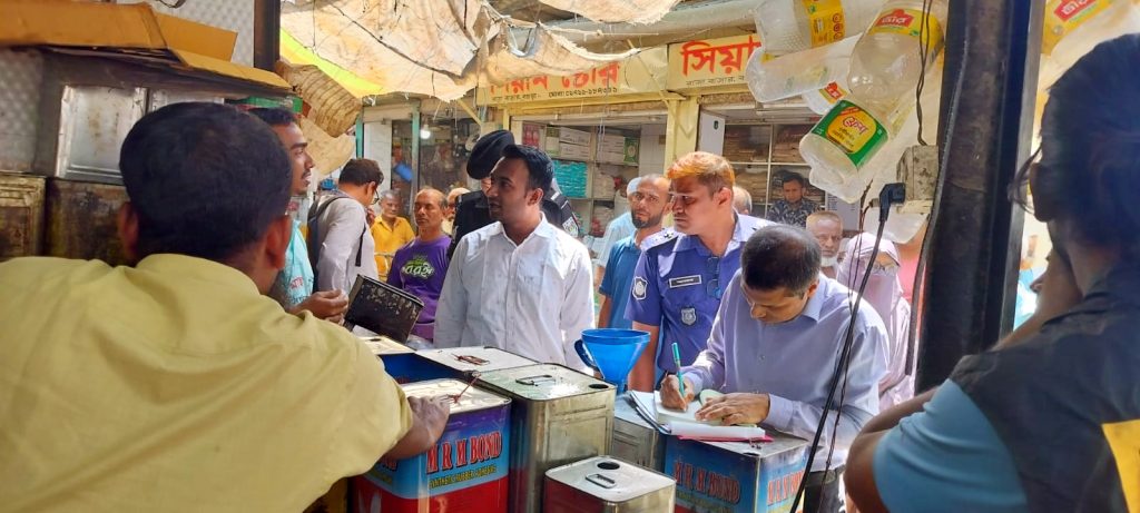 শনিবার (১১ এপ্রিল ২০২৬) পরিচালিত এ অভিযানে নেতৃত্ব দেন জাতীয় ভোক্তা অধিকার সংরক্ষণ অধিদপ্তরের সহকারী পরিচালক মোঃ মেহেদী হাসান। অভিযানে সয়াবিন তেলের মজুদ পরিস্থিতি, মূল্য তালিকা প্রদর্শন, ক্রয়-বিক্রয়ের ভাউচার সংরক্ষণ এবং সরকার নির্ধারিত মূল্যে তেল বিক্রি হচ্ছে কিনা এসব বিষয় তদারকি করা হয়।