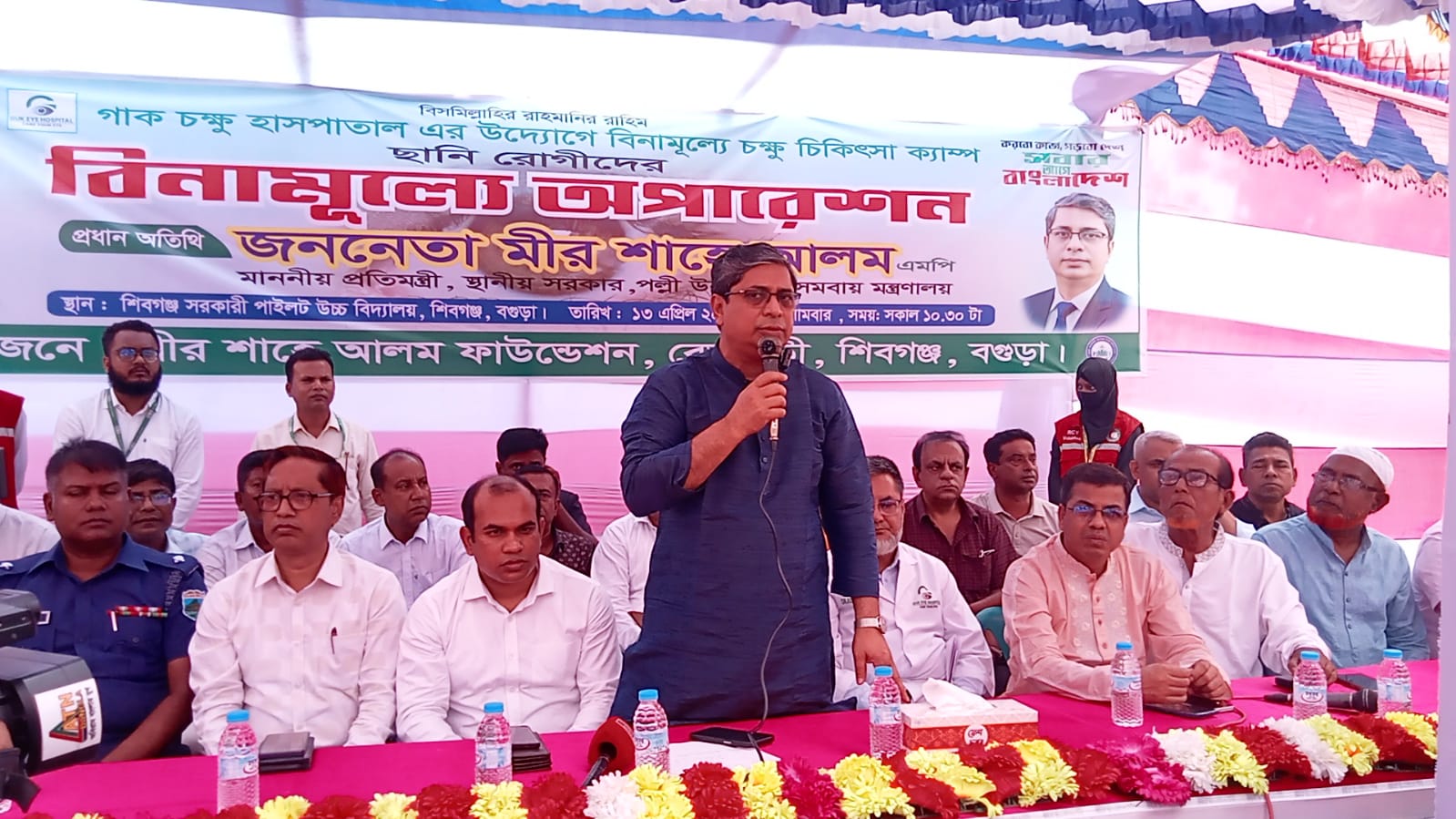 সোমবার গাক চক্ষু হাসপাতালের সার্বিক সহযোগিতায় সোমবার (১৩ এপ্রিল) সকাল ১১টায় শিবগঞ্জ সরকারি পাইলট উচ্চ বিদ্যালয় মাঠে এবং সকাল ১১টা ৩০ মিনিটে মোকামতলা বালিকা উচ্চ বিদ্যালয় মাঠে পৃথক আয়োজনে এই কর্মসূচির উদ্বোধন করেন প্রধান অতিথি হিসেবে উপস্থিত থেকে মাননীয় প্রতিমন্ত্রী জনাব মীর শাহে আলম এমপি।