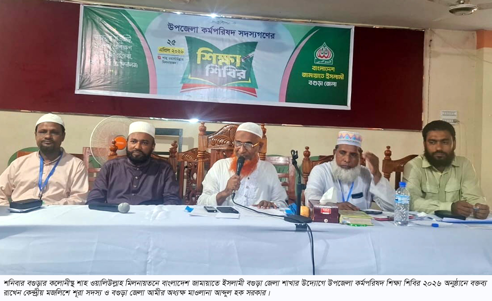বগুড়া সংবাদ : শনিবার বগুড়ার কলোনীস্থ শাহ ওয়ালিউল্লাহ মিলনায়তনে বাংলাদেশ জামায়াতে ইসলামী বগুড়া জেলা শাখার উদ্যোগে উপজেলা কর্মপরিষদ শিক্ষা শিবির ২০২৬ দিনব্যাপী অনুষ্ঠিত হয়। জেলা জামায়াতের নায়েবে আমীর অধ্যাপক আব্দুল বাছেদের পরিচালনায় এবং জেলা সেক্রেটারি মাওলানা মানছুরুর রহমানের ব্যবস্থাপনায় অনুষ্ঠিত এ শিক্ষা শিবিরে প্রধান অতিথি হিসেবে বক্তব্য প্রদান করেন কেন্দ্রীয় কর্মপরিষদ সদস্য ও বগুড়া অঞ্চলের সহকারী পরিচালক অধ্যাপক নজরুল ইসলাম। বিশেষ অতিথি হিসেবে উপস্থিত ছিলেন কেন্দ্রীয় মজলিশে শূরা সদস্য ও বগুড়া জেলা আমীর অধ্যক্ষ মাওলানা আব্দুল হক সরকার। এ ছাড়াও অনুষ্ঠানে উপস্থিত ছিলেন জেলা নায়েবে আমীর মাওলানা আব্দুল হাকিম সরকার, জেলা অ্যাসিস্ট্যান্ট সেক্রেটারি মঞ্জুরুল ইসলাম রাজু, মাওলানা আব্দুল বাসেত, মাওলানা মিজানুর রহমান। জেলা কর্মপরিষদ সদস্যদের মধ্যে উপস্থিত ছিলেন মাওলানা আব্দুল মজিদ, লতিফ ইব্রাহিম জিন্নাহ, হাফেজ আব্দুন নূর খন্দকার, মাওলানা মমতাজ উদ্দিন, আব্দুল্লাহেল বাকি, রেজাউল করিম, আব্দুল মোমিন এবং নূর মোহাম্মাদ আবু তাহের। দিনব্যাপী এ শিক্ষাশিবিরে সংগঠনের লক্ষ্য ও উদ্দেশ্য বাস্তবায়ন, কর্মীদের মানোন্নয়ন এবং দ্বীনি দাওয়াতের কার্যক্রমকে আরও গতিশীল করার লক্ষ্যে গুরুত্বপূর্ণ দিকনির্দেশনা প্রদান করা হয়। অনুষ্ঠানে প্রধান অতিথি বলেন, সরকার পতিত ফ্যাসিস্ট আওয়ামী লীগের পতন থেকে শিক্ষা নেয়নি। তাই তারা জুলাই সনদকে উপেক্ষা ও গণভোটের রায় বাতিলের মাধ্যমে ছাত্র-জনতার রক্তের সাথে প্রতারণা করেছে। দেশ পরিচালনায় সরকারের ব্যর্থতা ঢাকতে তারা দেশব্যাপী ছাত্রদলকে সন্ত্রাসের পথে উস্কে দিচ্ছে। জাতির দৃষ্টি ভিন্নখাতে প্রবাহিত করতে ছাত্রদলকে দিয়ে চট্টগ্রাম, ঈশ্বরদীর পর রাজধানীর শাহবাগ থানায় ঢুকে ডাকসু নেতৃবৃন্দের উপর নৃশংস হামলা চালানো হয়েছে। এভাবে সরকার পরিকল্পিতভাবে দেশকে সংঘাতের দিকে ঠেলে দিচ্ছে। দায়িত্বশীল বিরোধী দল হিসেবে জামায়াত সকল পরিস্থিতি ধৈর্য্যরে সাথে মোকাবেলা করছে। জামায়াতের সকল স্তরের দায়িত্বশীল ও নেতা-কর্মীদের সতর্কতার সহিত সার্বিক পরিস্থিতি পর্যবেক্ষণ করতে হবে। তিনি বলেন, জামায়াত মানবতার কল্যাণ সাধনের মাধ্যমে আল্লাহর সন্তুষ্টি অর্জন করতে চায়। বাংলাদেশের সবুজ ভূ-খন্ডে ইনসাফভিত্তিক সমাজ বিনির্মাণ করতে চায়। পতিত ফ্যাসিস্ট আওয়ামী সরকার আদর্শিক মোকাবেলায় ব্যর্থ হয়ে আমাদের উপর নির্যাতনের স্টীম রোলার চালিয়েছে। জাতীয় নেতৃবৃন্দ বিচারের নামে প্রহসন চালিয়ে ফাঁসিতে ও কারাগারে নির্যাতন চালিয়ে শহীদ করেছে। শত শত ভাইকে খুন ও গুম করেছে। লাখ লাখ নেতাকর্মীকে মিথ্যা মামলা দিয