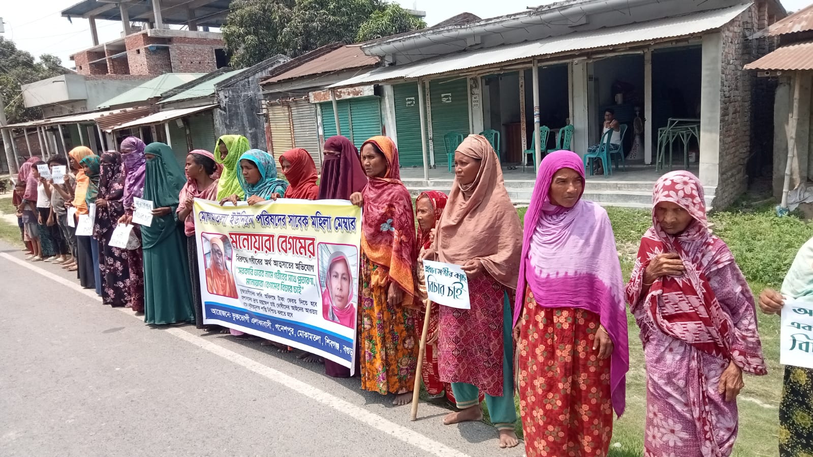বগুড়া সংবাদ : বগুড়ার শিবগঞ্জে সরকারি ঘর ও বিভিন্ন ভাতা কার্ড দেওয়ার নাম করে লাখ লাখ টাকা আত্মসাতের অভিযোগ উঠেছে মনোয়ারা বেগম নামে এক সাবেক নারী ইউপি সদস্যের বিরুদ্ধে অভিযোগ। মোনোয়ারা বেগম উপজেলার মোকামতলা ইউনিয়নের ১, ২ ও ৩ নম্বর ওয়ার্ডের সাবেক সংরক্ষিত সদস্য। এ ঘটনায় মনোয়ারার বিচার দাবি করে শনিবার (২৫ এপ্রিল) দুপুরে উপজেলার গনেশপুর এলাকার মোকামতলা-জয়পুরহাট সড়কে মানববন্ধন করেছেন ভুক্তভোগীরা। মানববন্ধনে বক্তারা বলেন, “সরকারি ঘরের নামে গরীবের সাথে প্রতারণা করেছেন মনোয়ারা বেগম। সরকারি সহায়তার আশ্বাস দিয়ে বিভিন্ন অসহায় মানুষের কাছ থেকে মোটা অঙ্কের টাকা নেওয়া হলেও তারা কোনো সুবিধা পাননি।” ভুক্তভোগী রিভা বেগম বলেন, “আমরা গরীব মানুষ। সরকারি ঘর দেওয়ার কথা বলে মনোয়ারা ১ লাখ টাকার নিয়েছে। কিন্তু চার বছর পার হয়ে গেলেও সরকারি ঘরও দেয়নি, টাকাও ফেরত দেয়নি। আমরা এর সুষ্ঠু বিচার চাই।” আরেক ভুক্তভোগী আবেদা বেগম বলেন, “আমার বাড়ি গরীবপুর বেড়াবালা। সবার থেকে ১ লাখ করে নিয়েছে, কিন্তু আমার বাড়ি একটু দূরে হওয়ার কারণে আমার থেকে ১ লাখ ৫ হাজার টাকা নিয়েছে। আমি গরু-ছাগল বিক্রি করে এই টাকা দিয়েছি। আমি আমার কষ্টের টাকা ফেরত চাই।” ভুক্তভোগীদের অভিযোগ, বহুদিন ধরে এ ধরনের অনিয়মের অভিযোগ থাকলেও প্রশাসনের পক্ষ থেকে কার্যকর কোনো পদক্ষেপ নেওয়া হয়নি। অভিযুক্তকে দ্রুত আইনের আওতায় এনে দৃষ্টান্তমূলক শাস্তির দাবি জানান তারা।