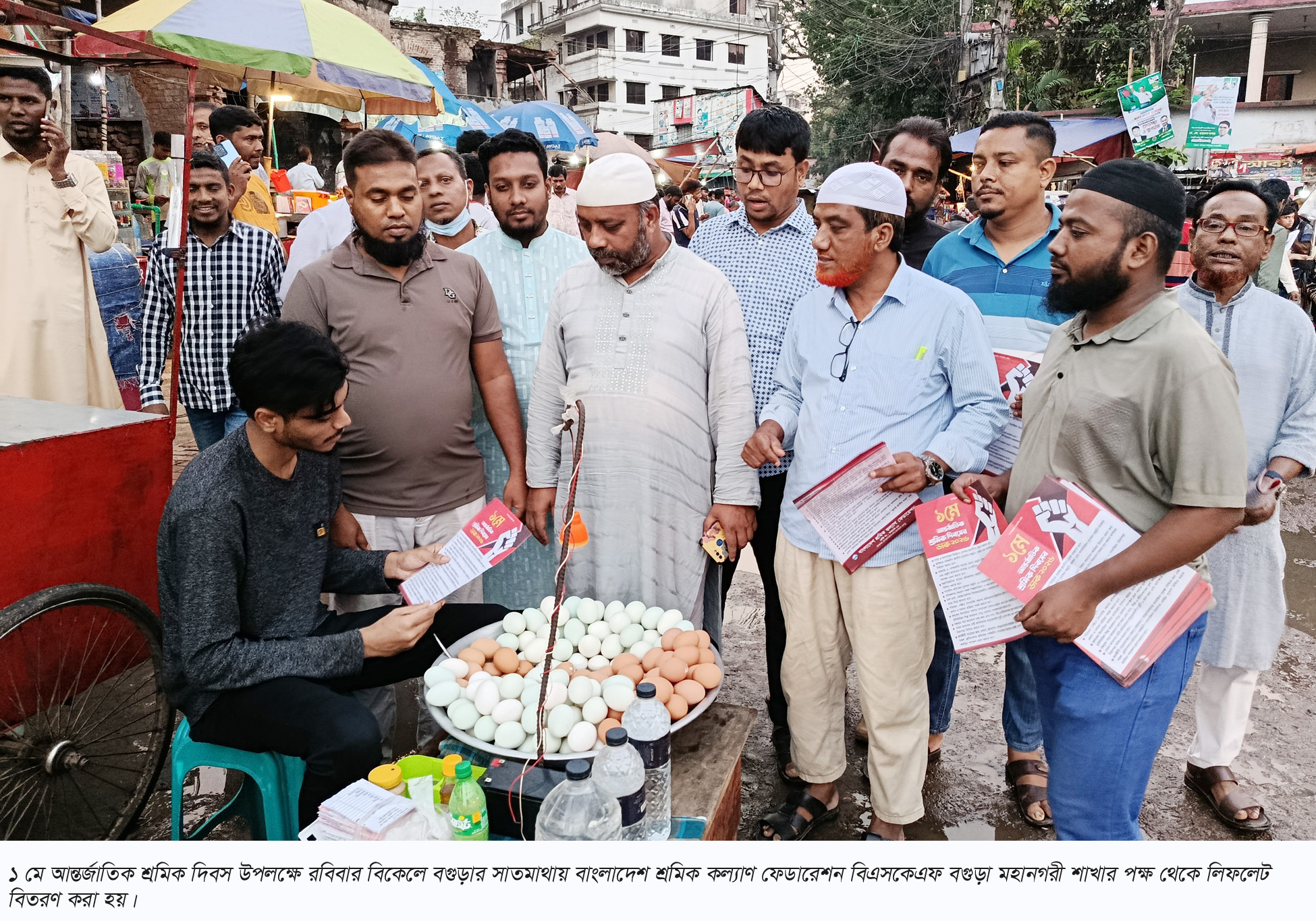 শ্রমিক দিবস সফল করতে বিএসকেএফ বগুড়া মহানগর শাখার লিফলেট বিতরণ