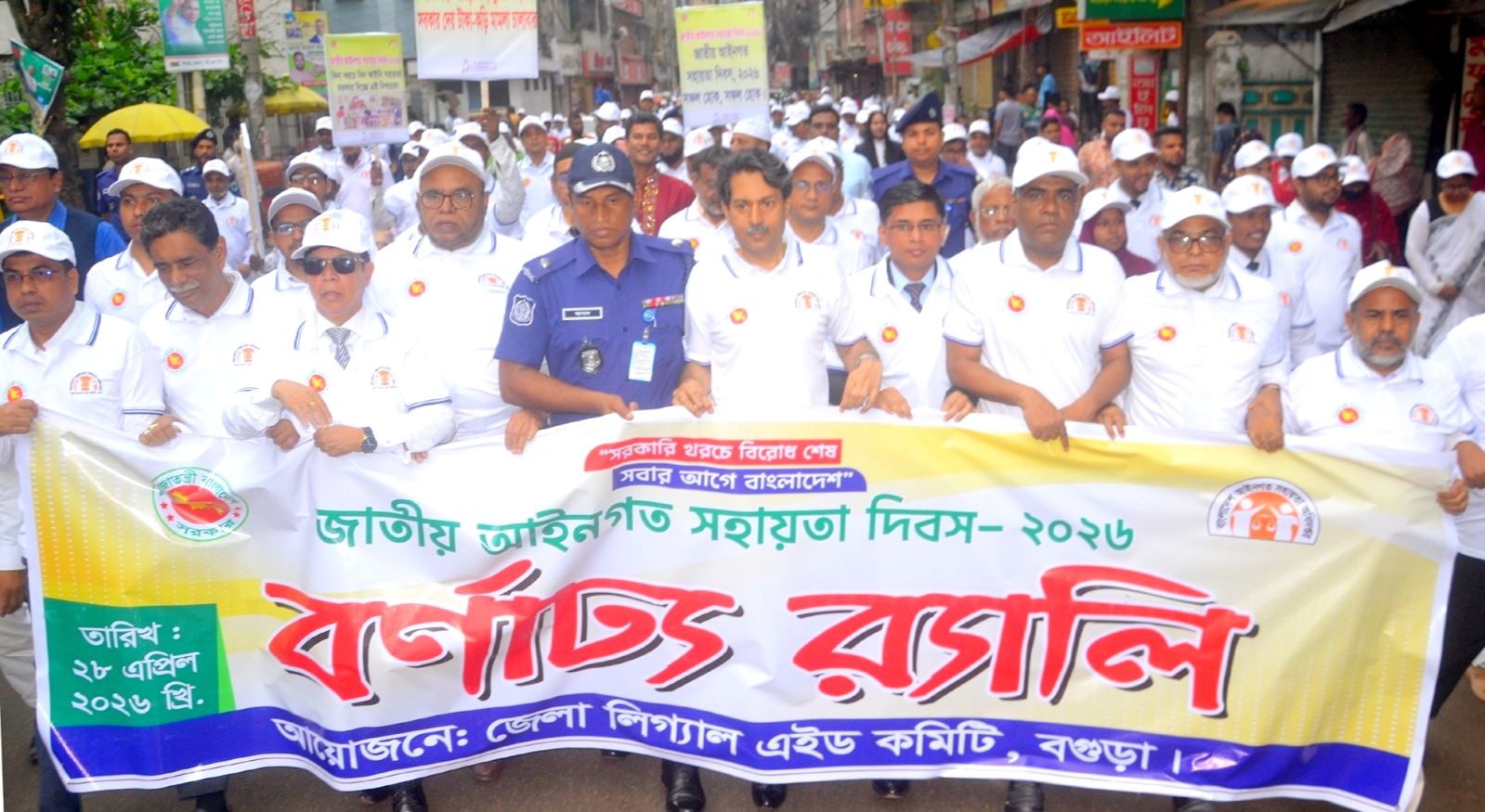 গণপ্রজাতন্ত্রী বাংলাদেশ সরকারের আইন, বিচার ও সংসদ বিষয়ক মন্ত্রণালয়ের আইন ও বিচার বিভাগের অধীন বাংলাদেশ আইনগত সহায়তা অধিদপ্তর ও বগুড়া জেলা লিগ্যাল এইড কমিটির উদ্যোগে কর্মসূচীর উদ্বোধন করেন জেলা লিগ্যাল এইড কমিটির চেয়ারম্যান এবং সিনিয়র জেলা ও দায়রা জজ মোঃ শাহজাহান কবির। এরপর এক বর্ণাঢ্য র্যালি বের হয়ে শহরের বিভিন্ন সড়ক প্রদক্ষিণ করে পুনরায় জেলা জজ আদালত প্রাঙ্গণে এসে শেষ হয়। এতে সর্বস্তরের বিচারকবৃন্দ, বিভিন্ন সরকারি দপ্তরের কর্মকর্তা, জেলা লিগ্যাল এইড কমিটির সদস্যবৃন্দ, আইনজীবী, এনজিও প্রতিনিধিগণ ও সচেতন নাগরিকরা স্বতঃস্ফূর্তভাবে অংশগ্রহণ করেন।
